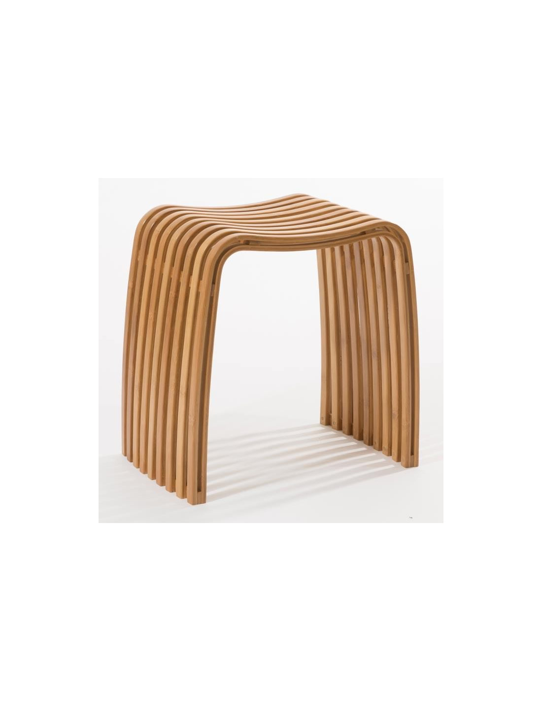 Stool in lacquered bamboo slats. Its ergonomic seating and lightness makes this stool a perfect complement for your bathroom. From time to time, it can be used under the shower but a frequent use is not advisable.
