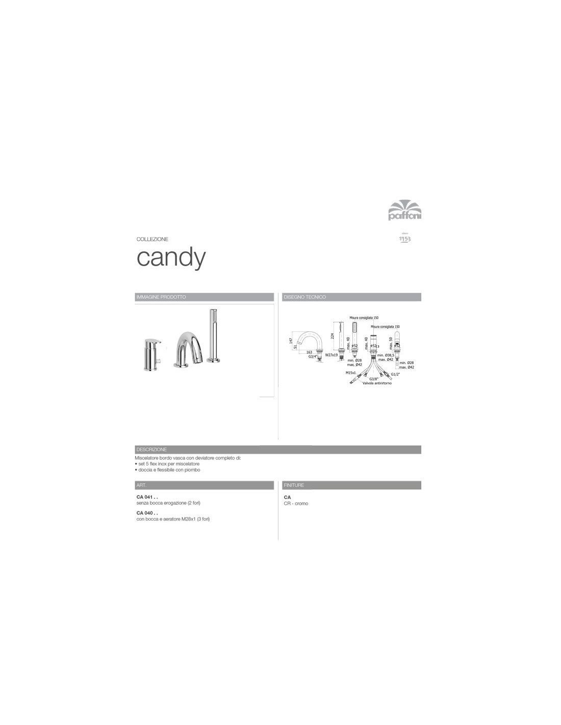 Miscelatore bordo vasca con o senza bocca di erogazione | Candy | Paffoni