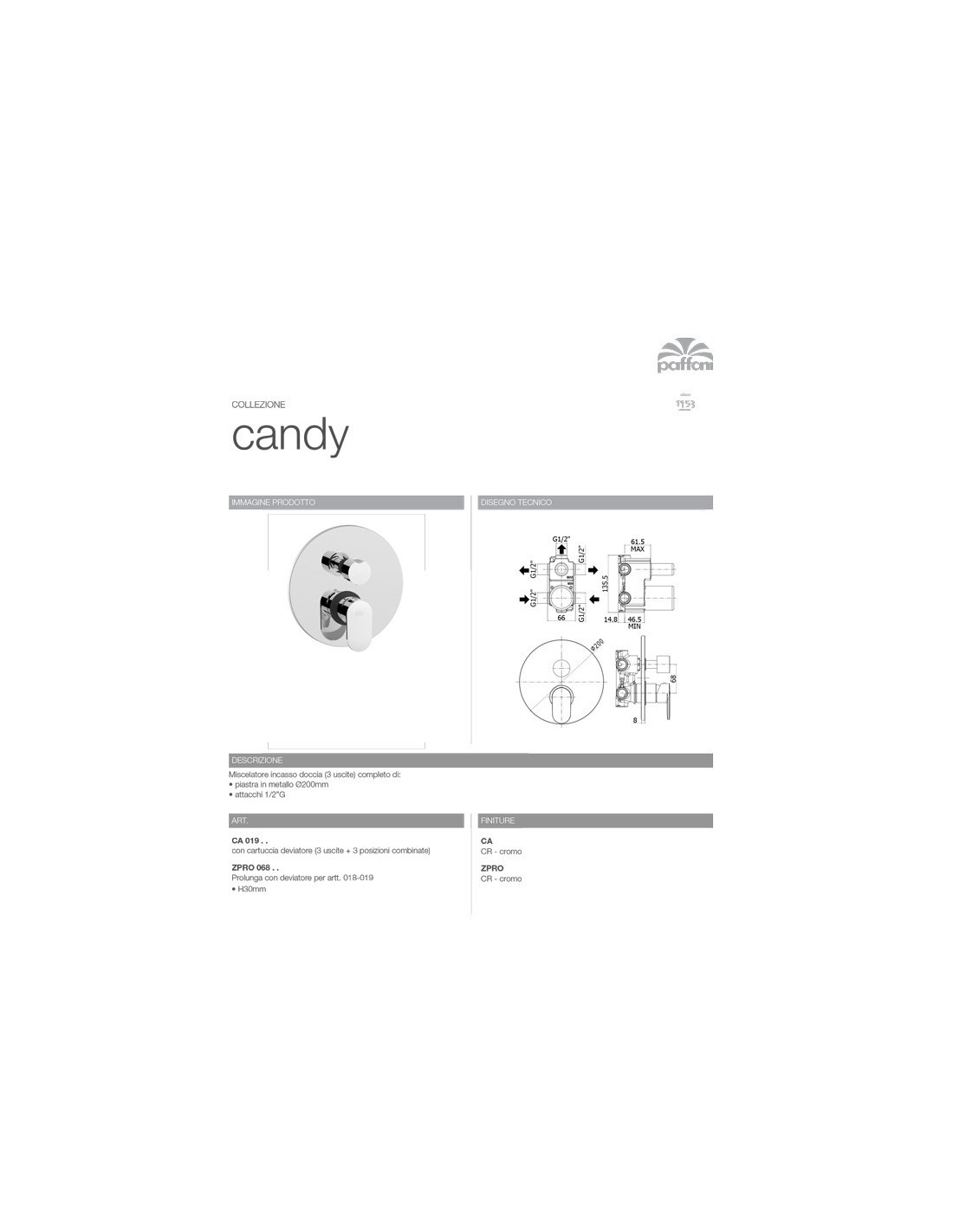 Miscelatore doccia incasso a 3 uscite | Candy | Paffoni
