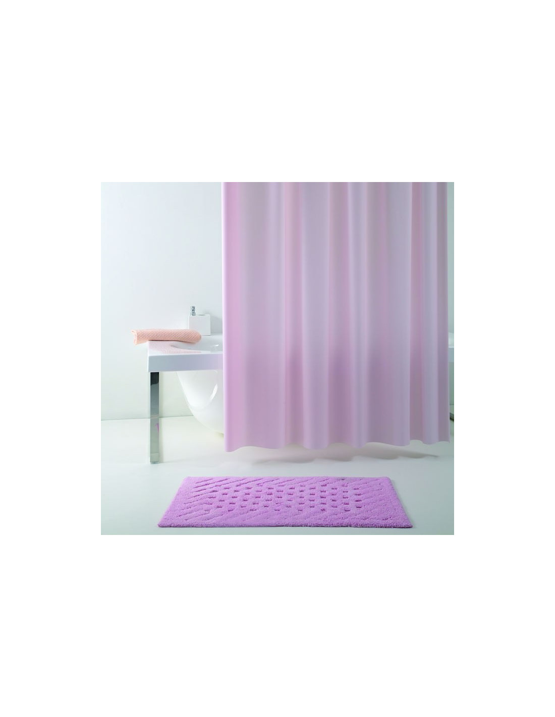 Shower curtain "Eva" in vinyl. Bacchetta's vinyl curtains are made in Italy, with high quality and 100% recyclable materials. Vinyl is a perfect material for shower curtains because of its softness and strength. The eyelets are electrically welded and reinforced. The ringss are included with the curtain. Each curtain is guaranteed for 3 years.