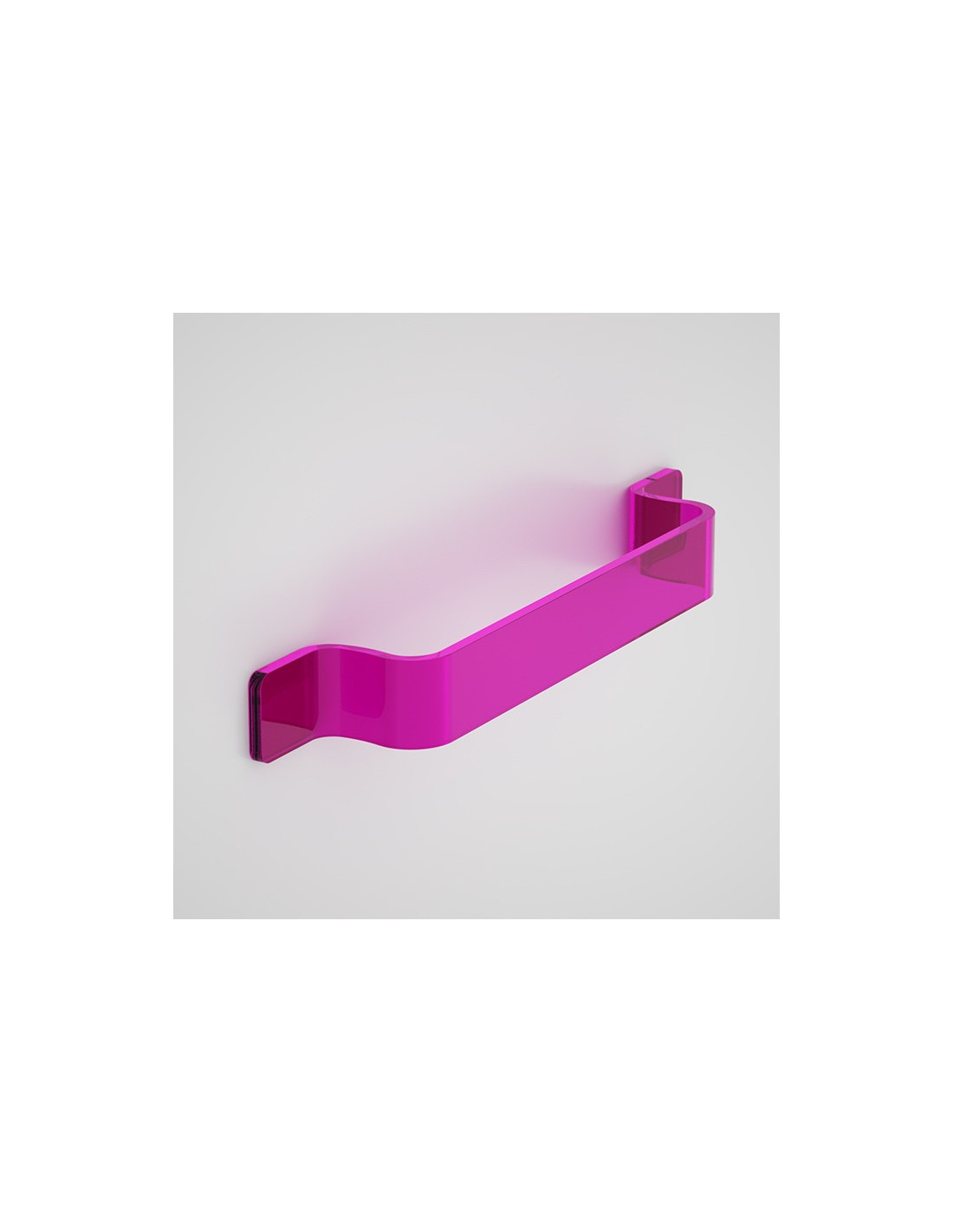 Towel holder in colored Plexiglass. This comfortable towel holder is made of Plexiglass and available in two versions: to paste or to wall mount. Fast to clean, very resistant and with many colors available to match any type of tiles. 7 different colors available.