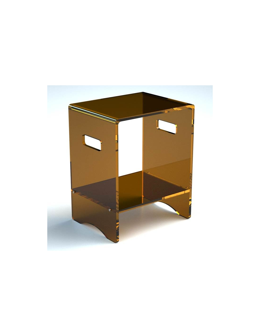 Stool with shelf in plexiglass. This stool with a very simple but functional shelf, will fit perfectly with any furniture and style in your bathroom or in other areas of your home. Put in a corner of the bathroom, or used when unexpected guests arrive, or in the living room or on the terrace this stool is perfect wherever you need a comfortable seat or a quick support.