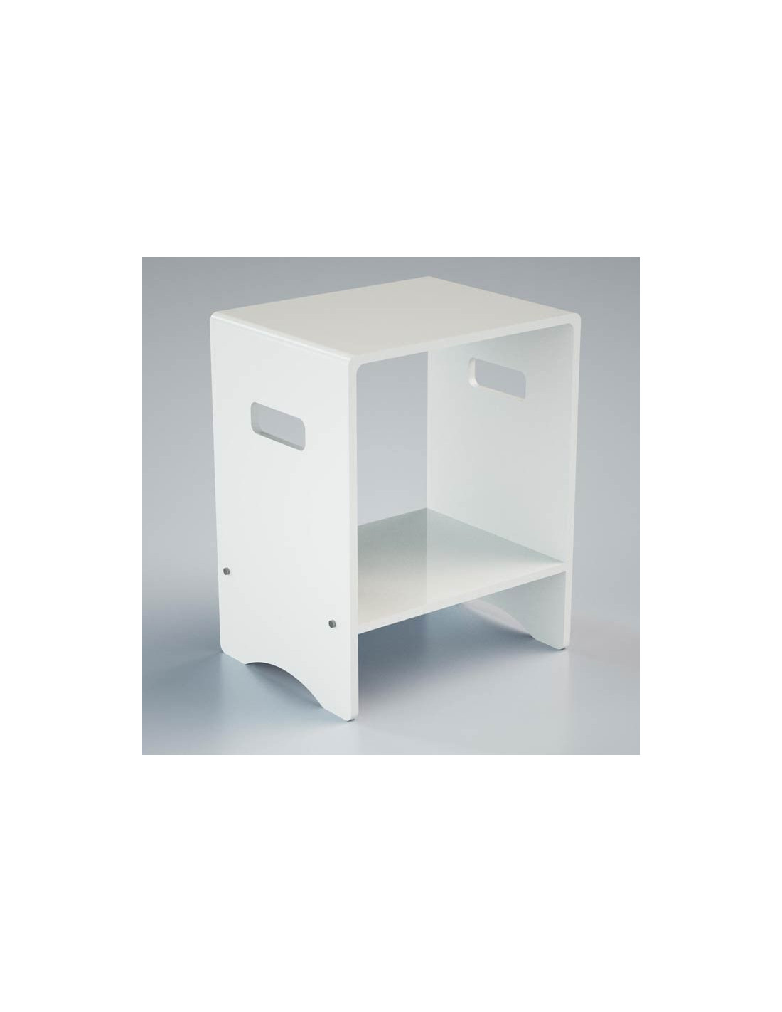 Stool with shelf in plexiglass. This stool with a very simple but functional shelf, will fit perfectly with any furniture and style in your bathroom or in other areas of your home.
