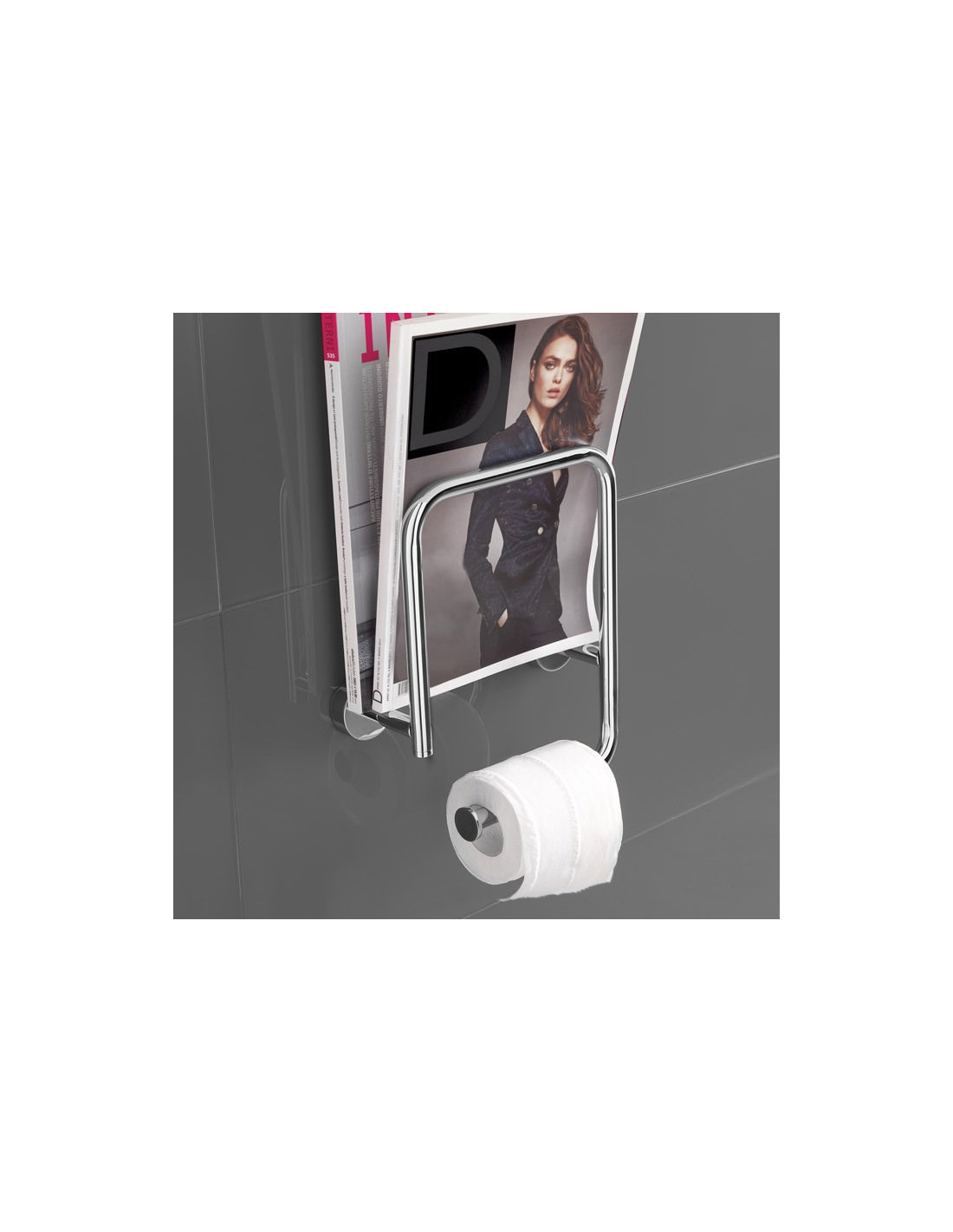 Magazine and toilet-paper holder with wall fixing. One object for two functions. Made in Italy | Chrome version.
