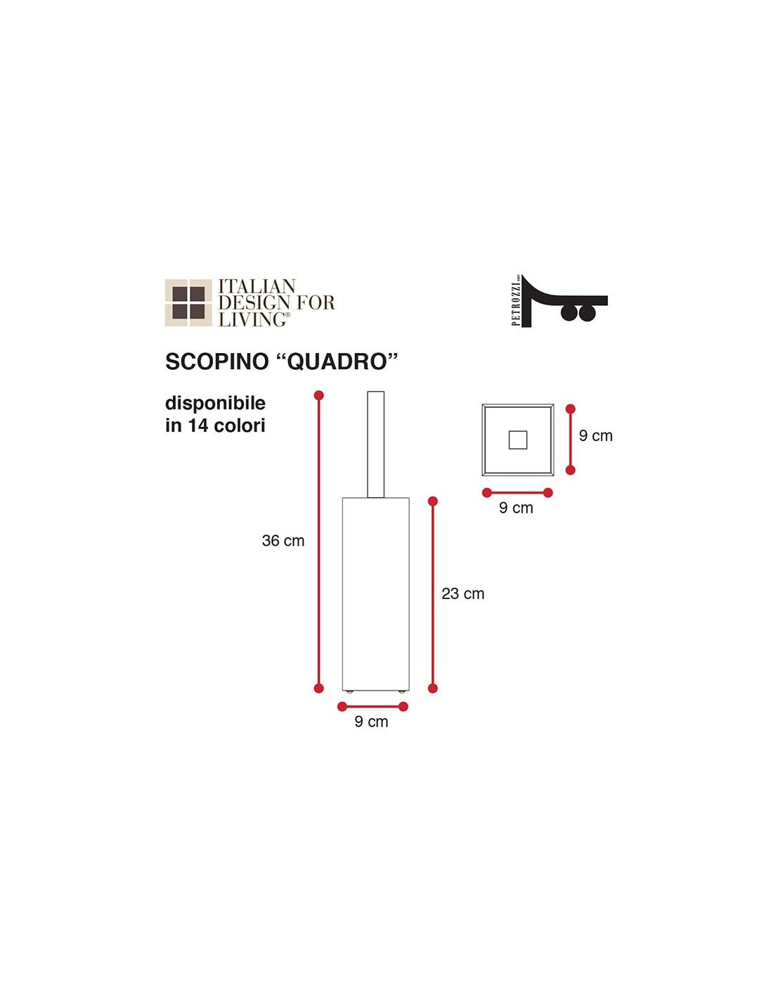 Porta scopino quadrato serie "QUADRO" a parete fissaggio a Tasselli in Plexiglass colorato.