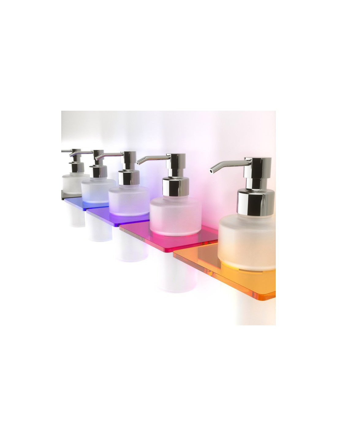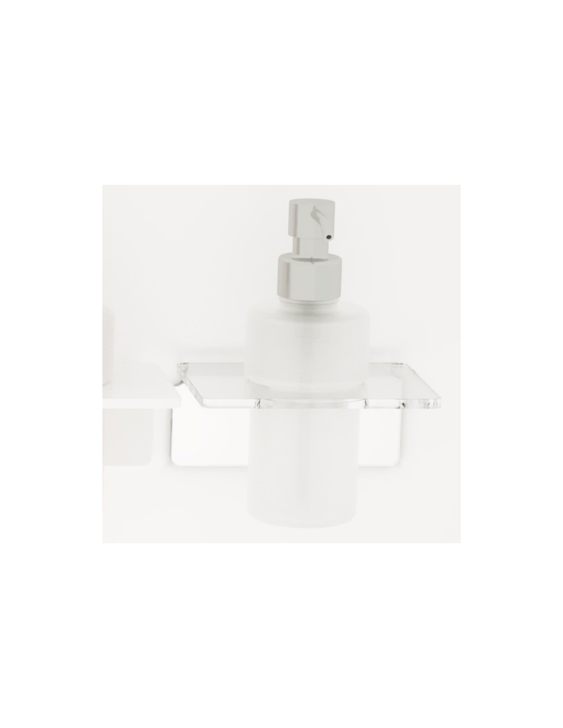 Porta sapone liquido ADELE in Plexiglass con bicchiere in vetro satinato e dispenser in ottone cromato, serie Adele.