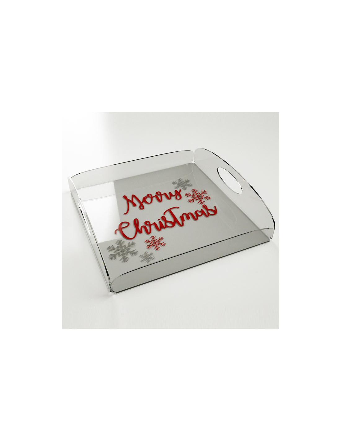 Vassoio NEVE “Merry Christmas”. Trasparente e Bianco stampa oro.