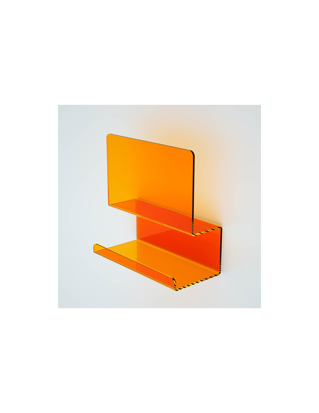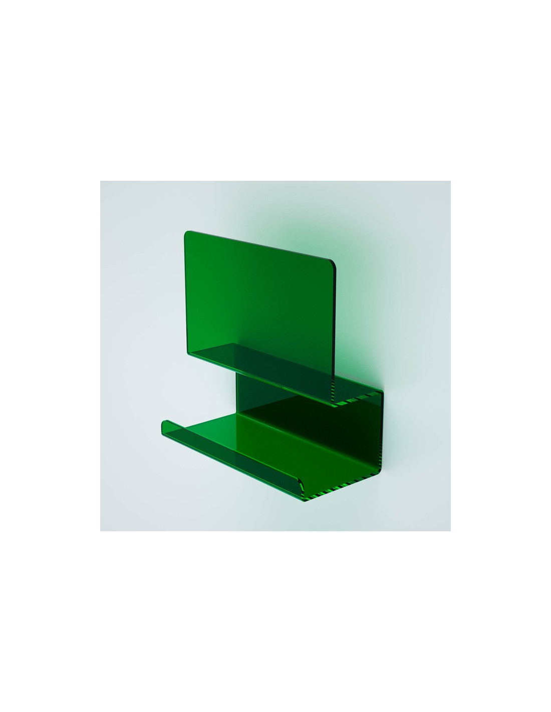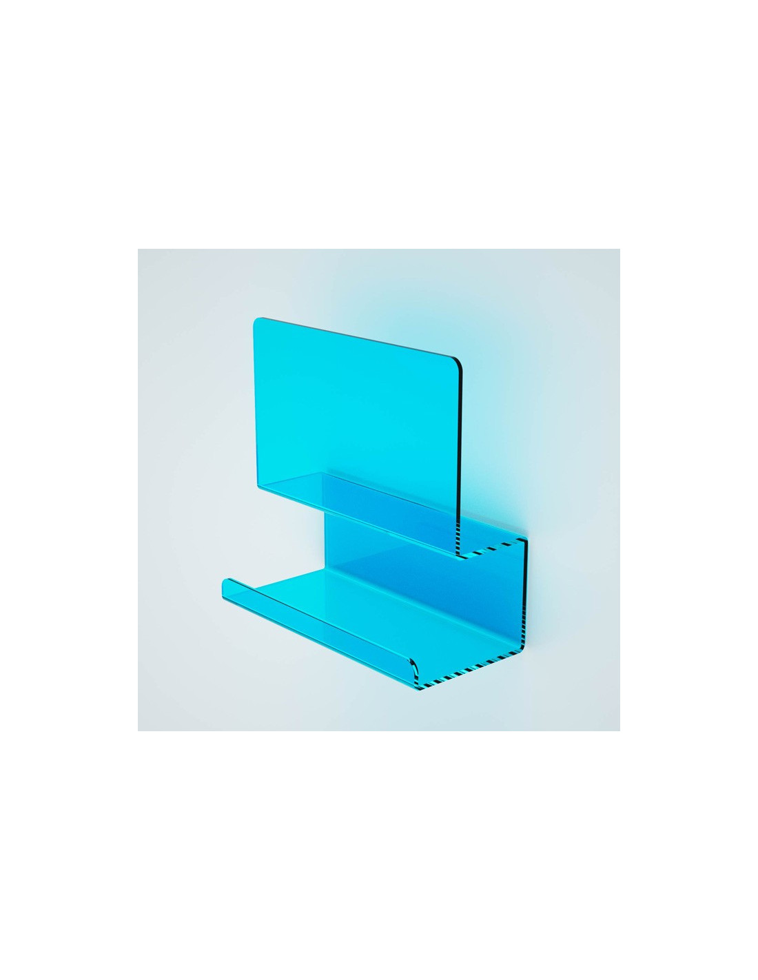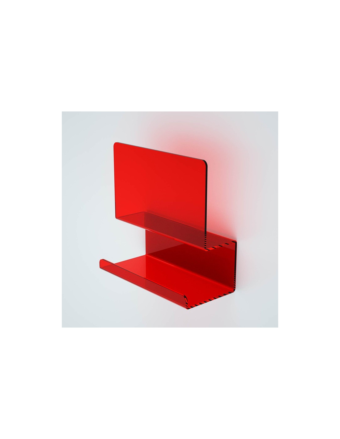 La mensola della serie folio è realizzata in plexiglass colorato. è leggera, resistente e dal costo contenuto.