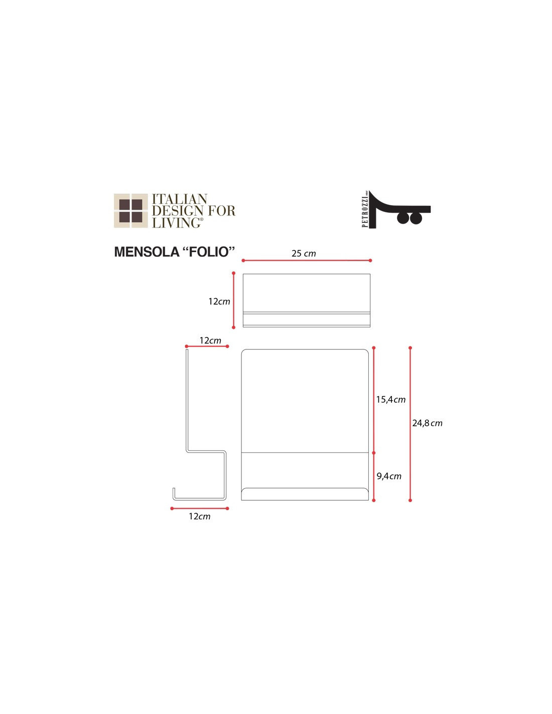 Larghezza 25 cm | Altezza 24,8 cm | Profondità 12 cm