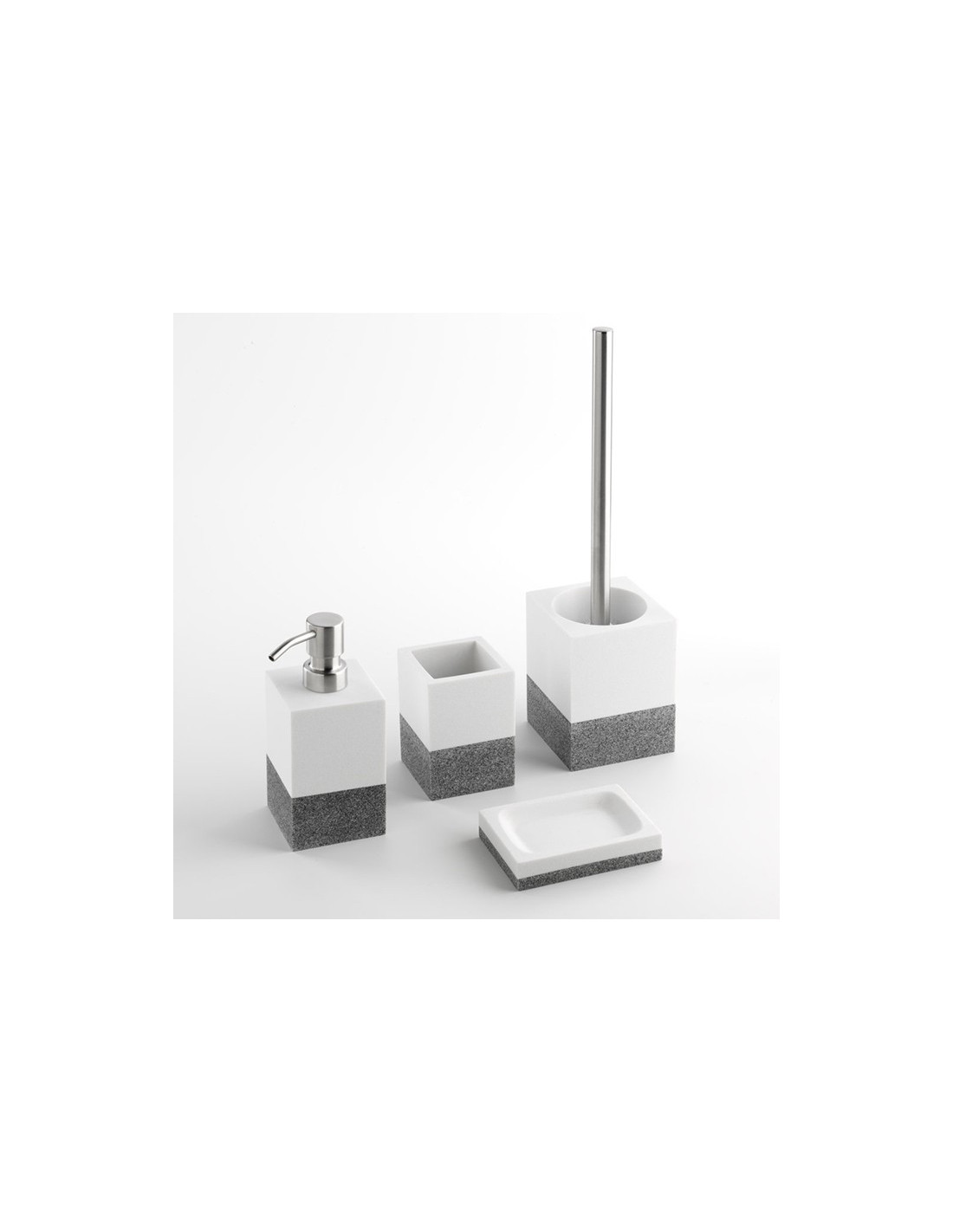 Comprendente il Dispenser per sapone liquido, il porta saponetta e il bicchiere porta spazzolino ed il porta scopino.