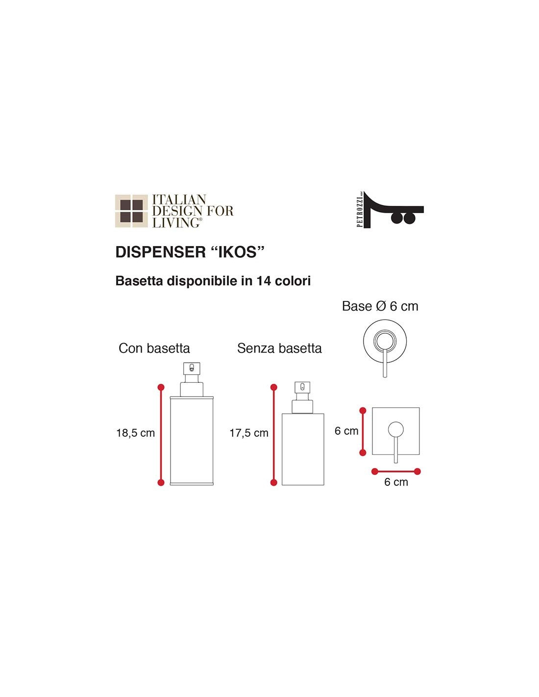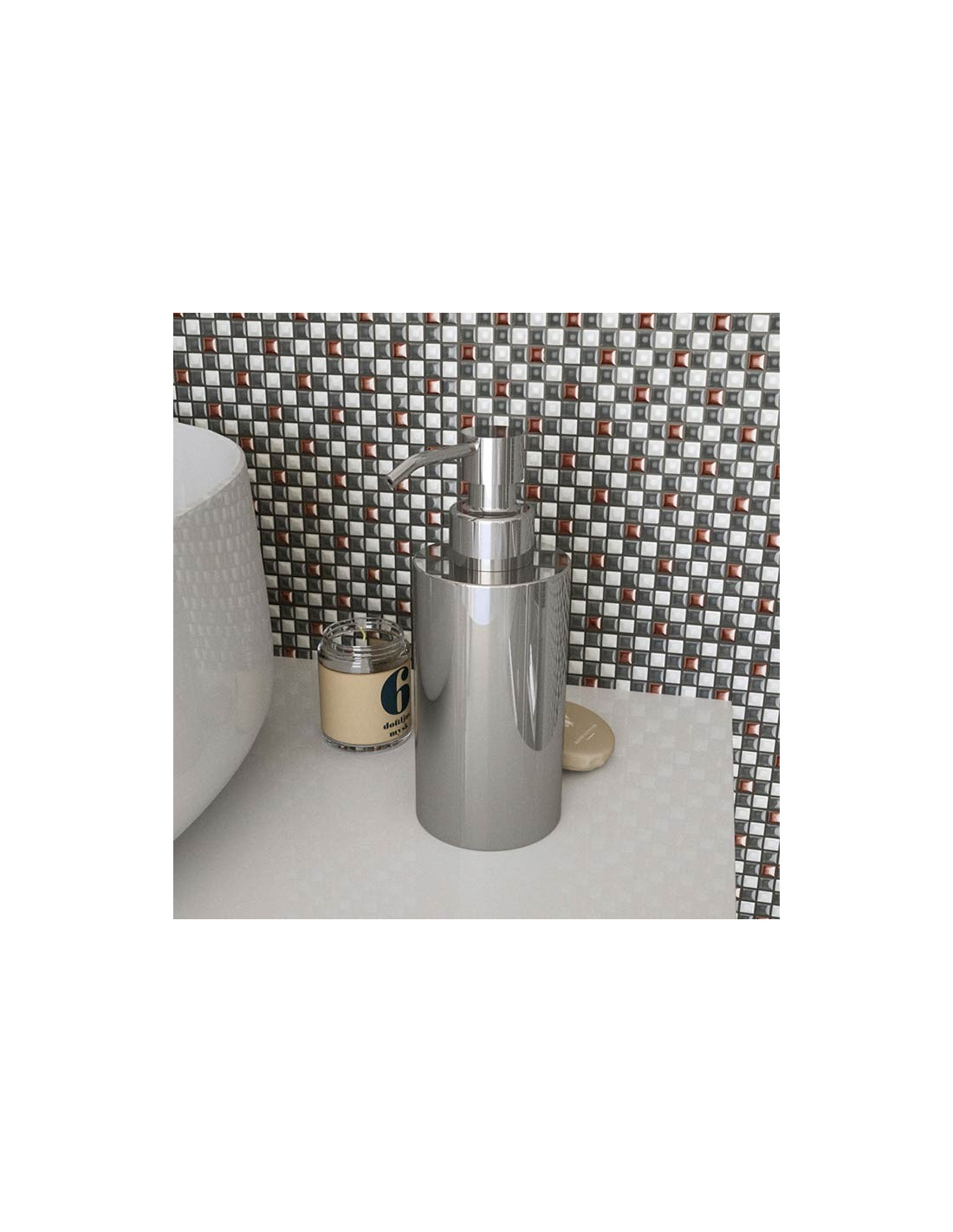 Dispenser IKOS in metallo cromato dalla forma quadrata o cilindrica.