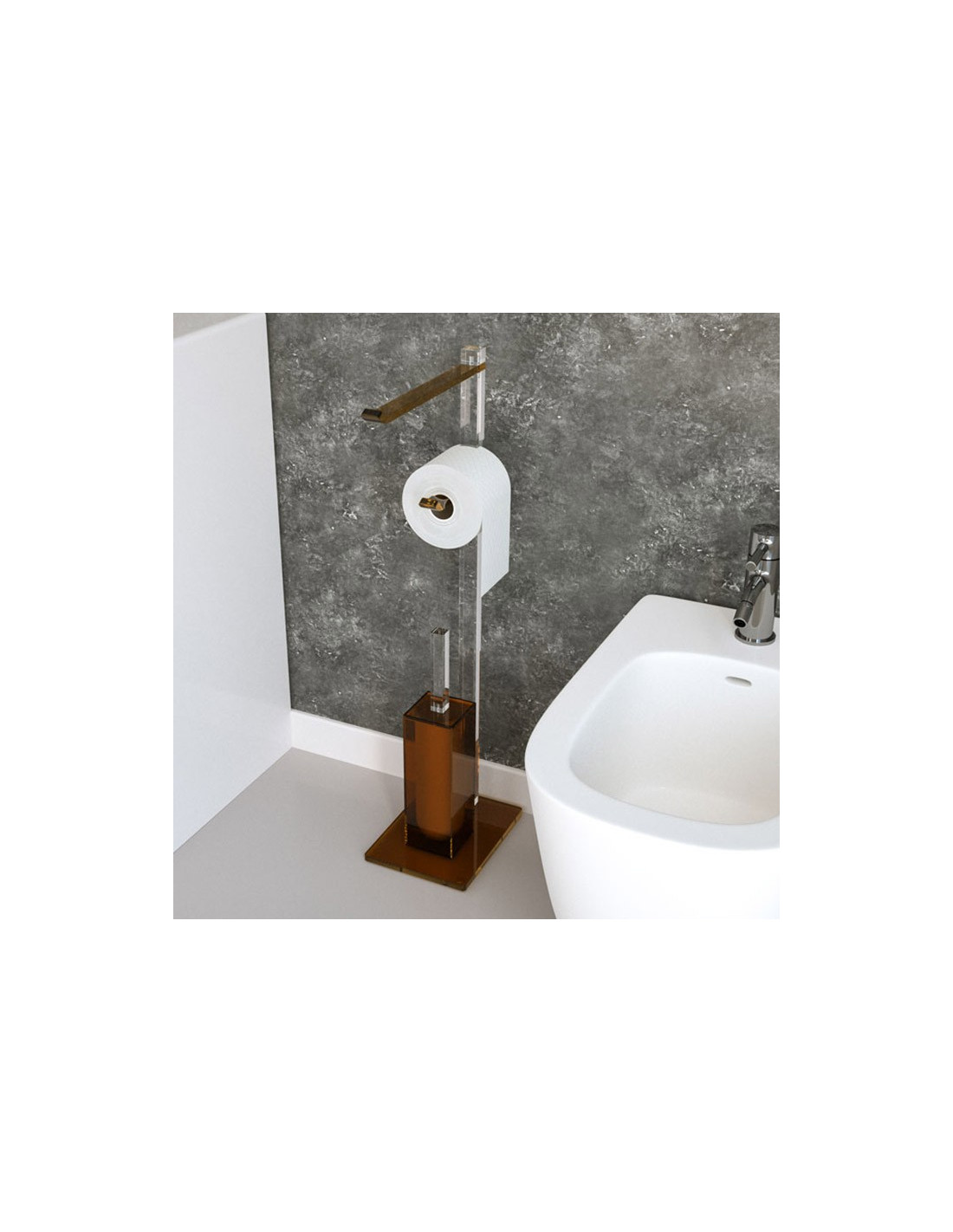 Piantana QUADRA 3 COLORATO con asta, portarotolo e portascopino in plexiglass di Petrozzi.