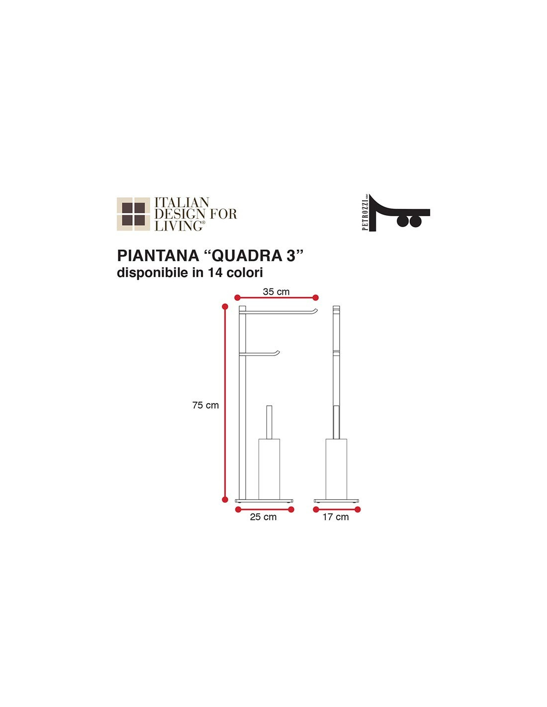 MISURA DISPONIBILE: Larghezza 17 cm | Altezza 75 cm | Profondità 35 cm | Base 25 cm