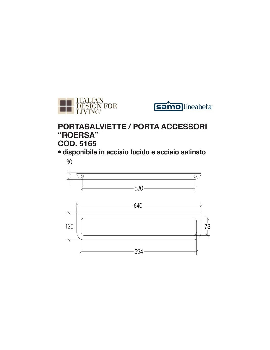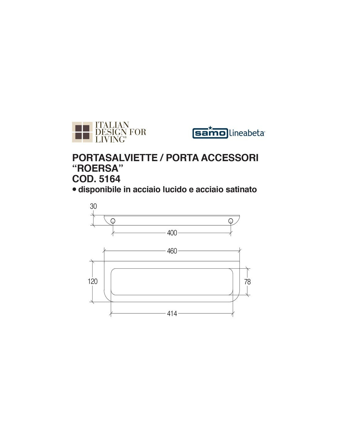 Portasalviette porta accessori da parete serie ROERSA in acciaio inox.