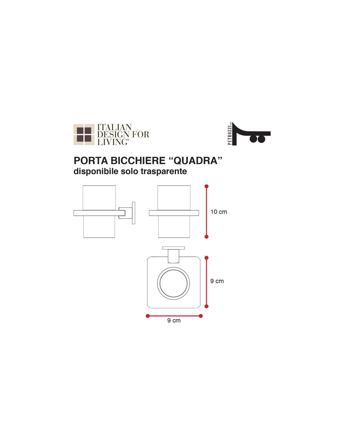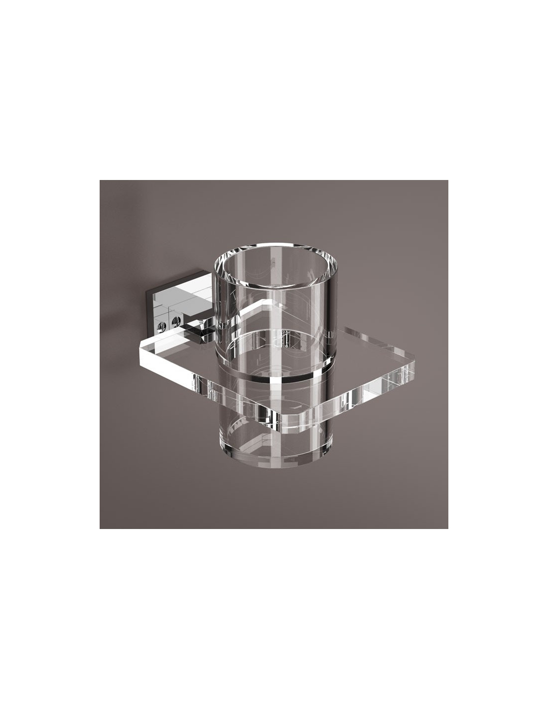 Porta bicchiere da parete in metallo cromato e plexiglass trasparente serie Quadra mm 10.
