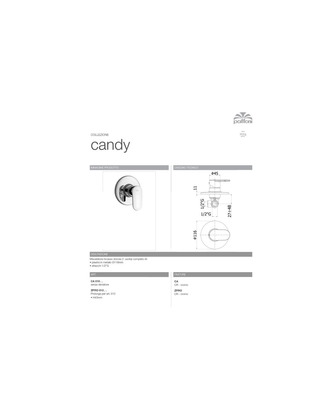 Miscelatore doccia da incasso ad 1 uscita serie Candy.
