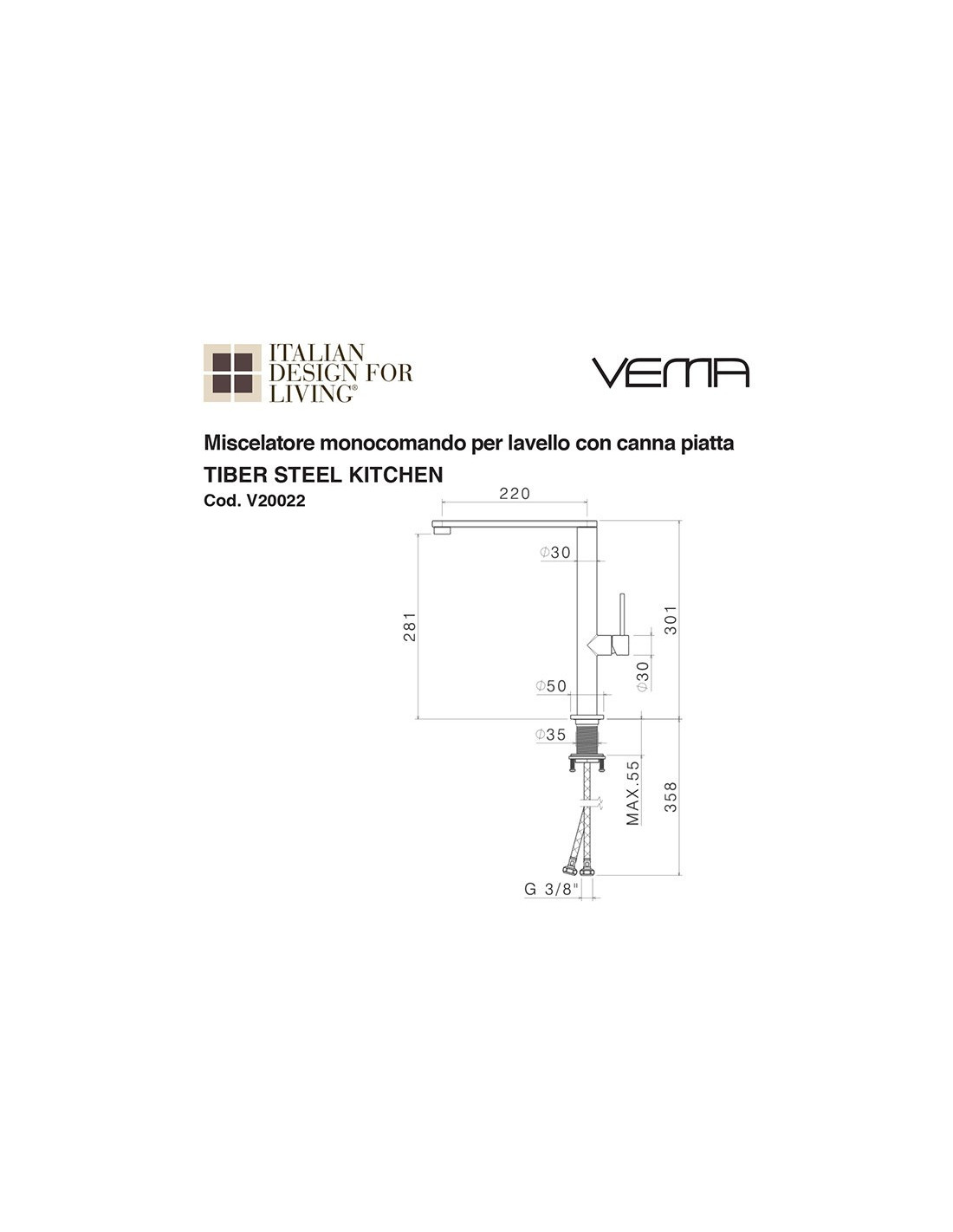 Miscelatore monocomando per lavello cucina serie TIBER STEEL KITCHEN.