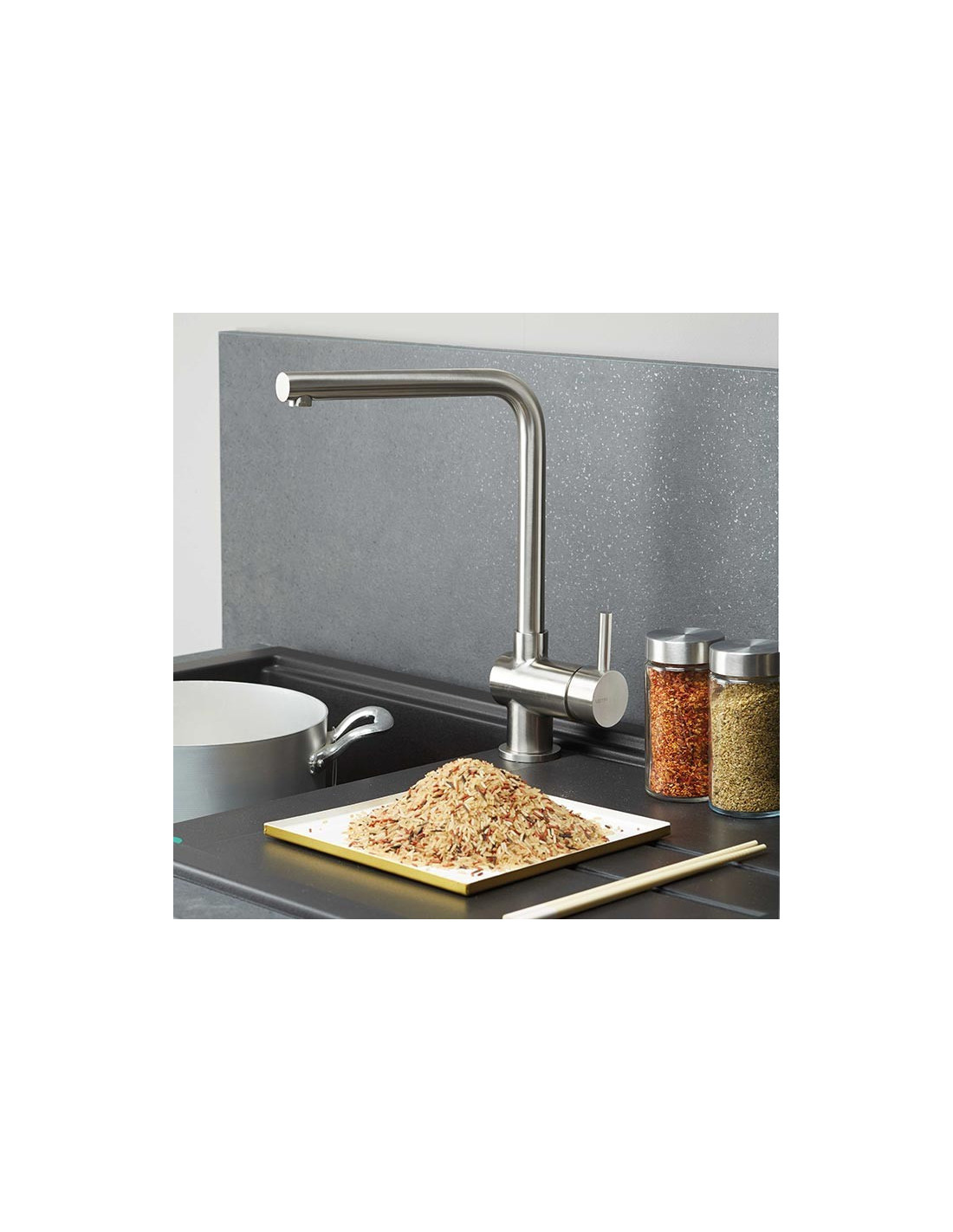 Questo miscelatore con canna a "L" girevole è adatto ai lavelli cucina.