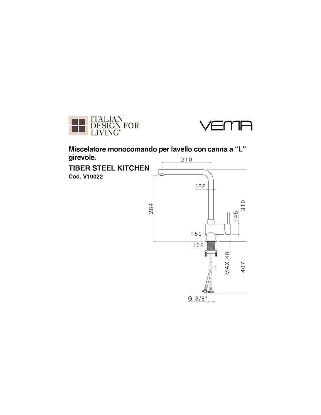 Miscelatore monocomando per lavello cucina serie TIBER STEEL KITCHEN.