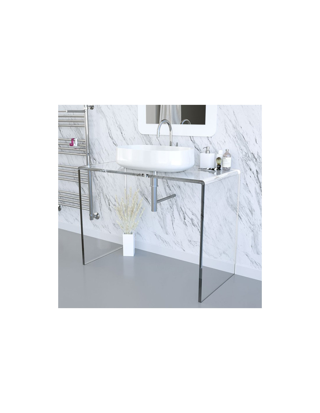 Mobile bagno modello PONTE nei colori  TRASPARENTE , BIANCO O NERO LUCIDO spessore 20 mm