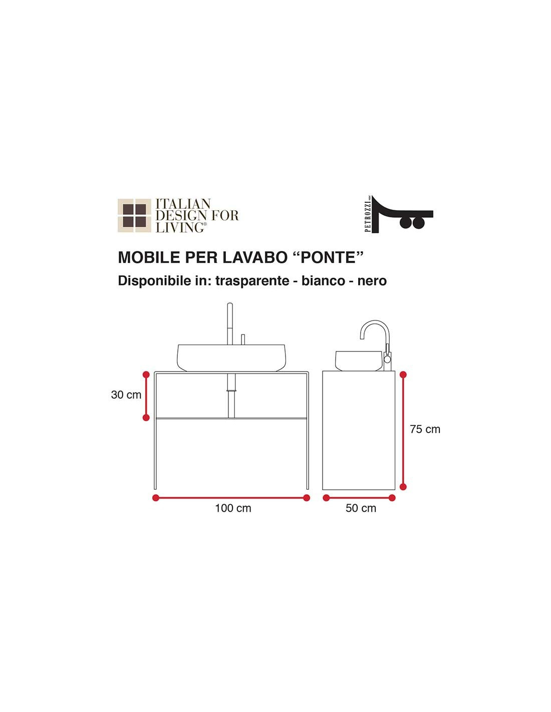 Mobile Bagno da 50 cm Ponte | Con o senza Lavabo | Trasparente | Bianco | Nero | Petrozzi