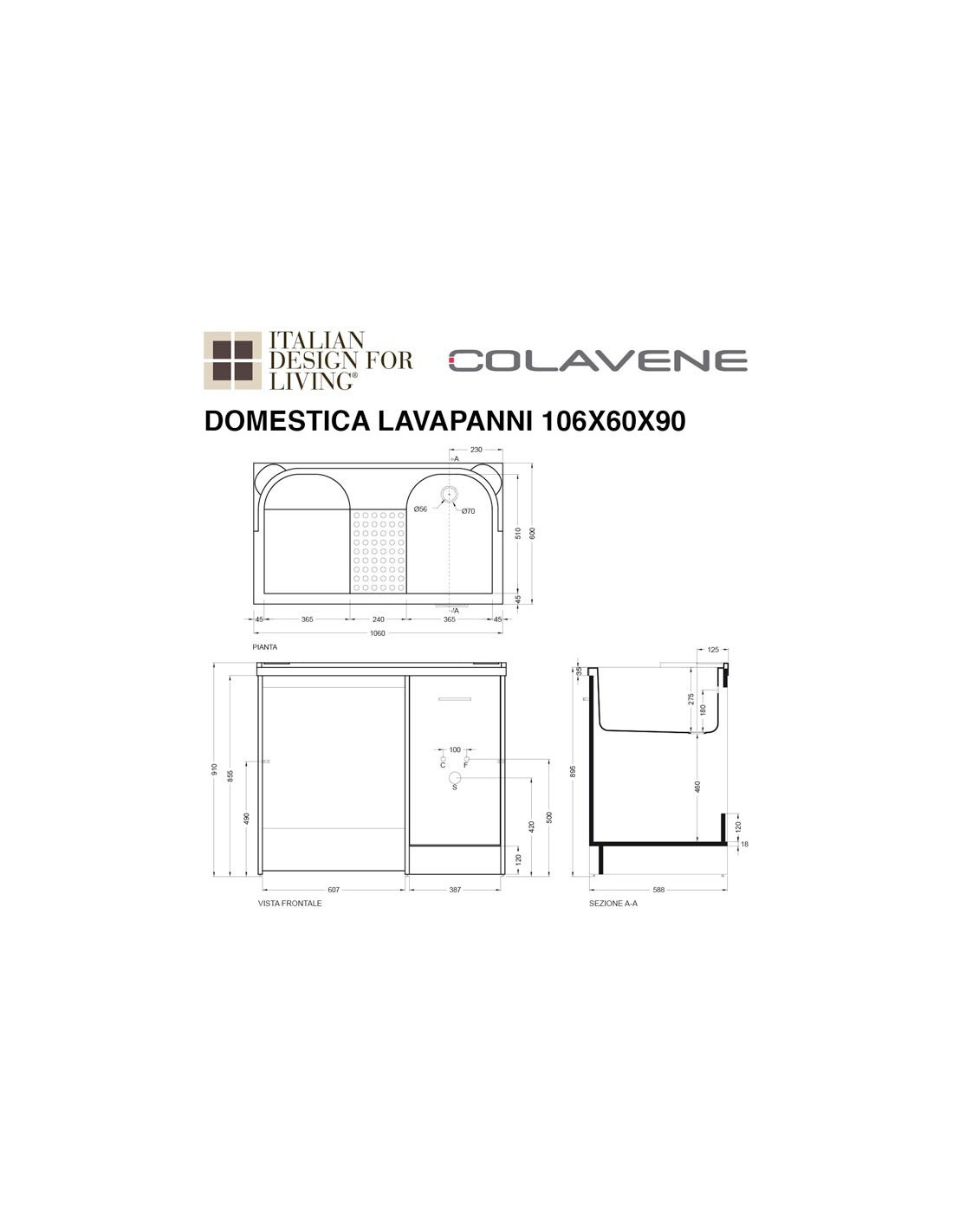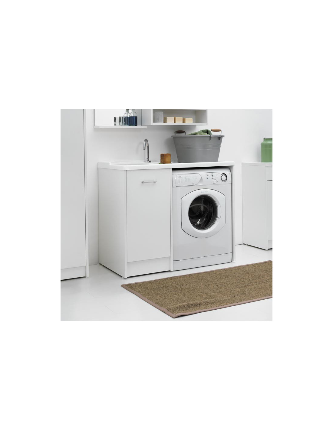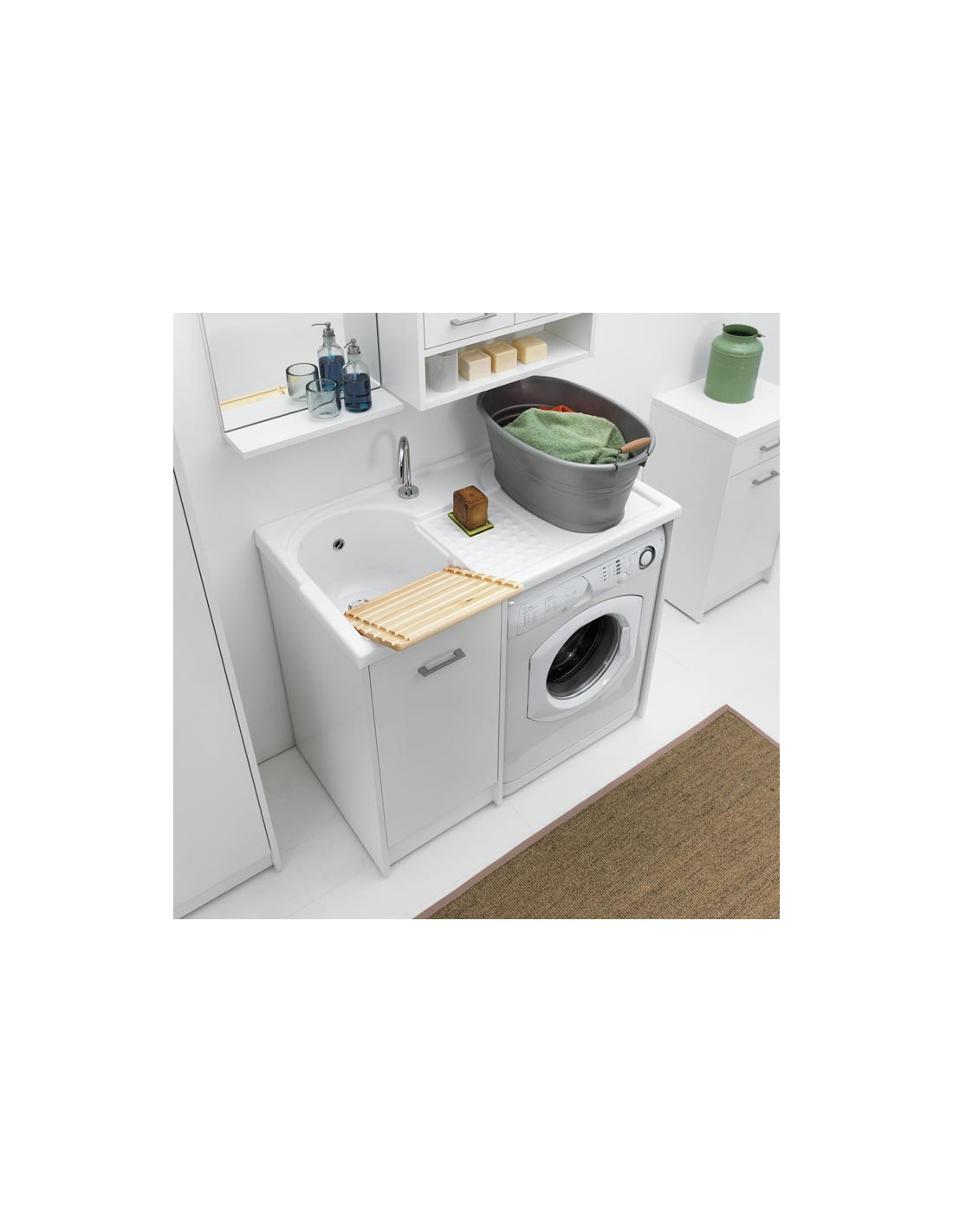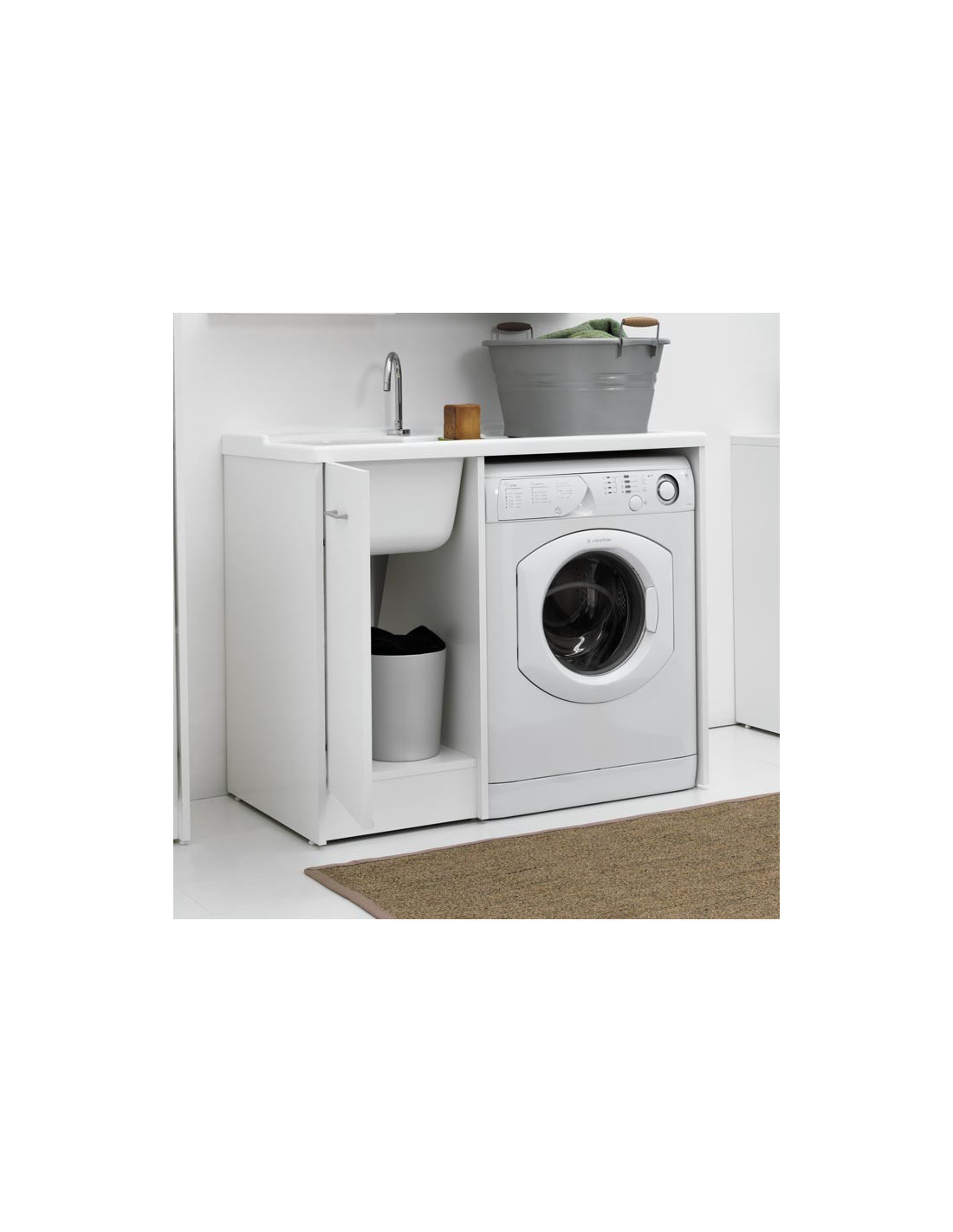 Questo mobile è composto da un box per contenere la lavatrice sulla destra e un comodo lavatoio sulla sinistra con mobiletto sottostante chiuso da un'anta.