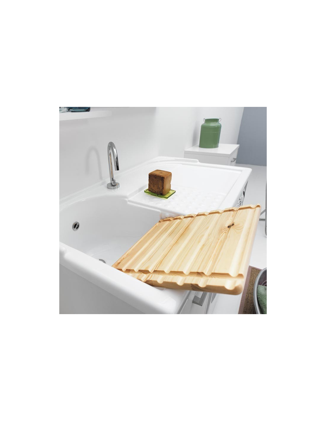 Il mobile è realizzato in truciolare nobilitato 18 mm, il lavatoio è in ABS metacrilato lucido mentre la tavola di lavaggio è in legno massello.