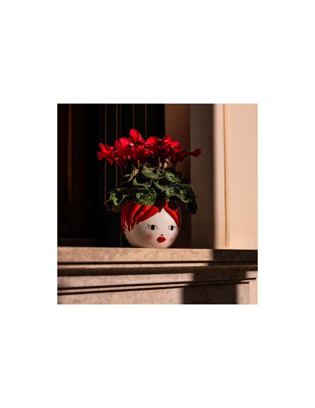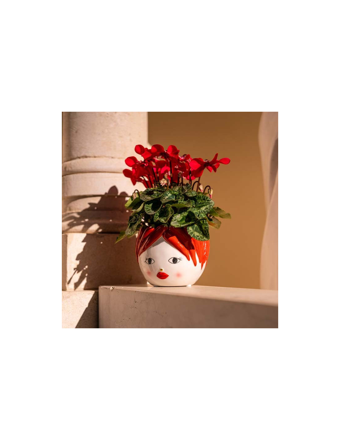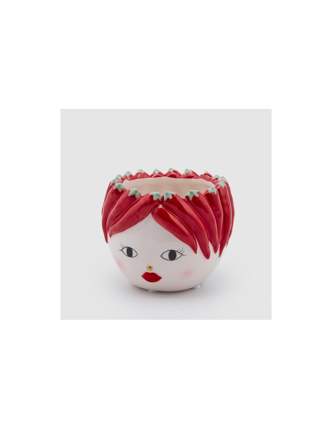 Originale e colorato vaso in ceramica con testa di donna e peperoncini rossi a rilievo; scenografico se utilizzato come vaso per piante e decorazioni ma bellissimo anche da solo.