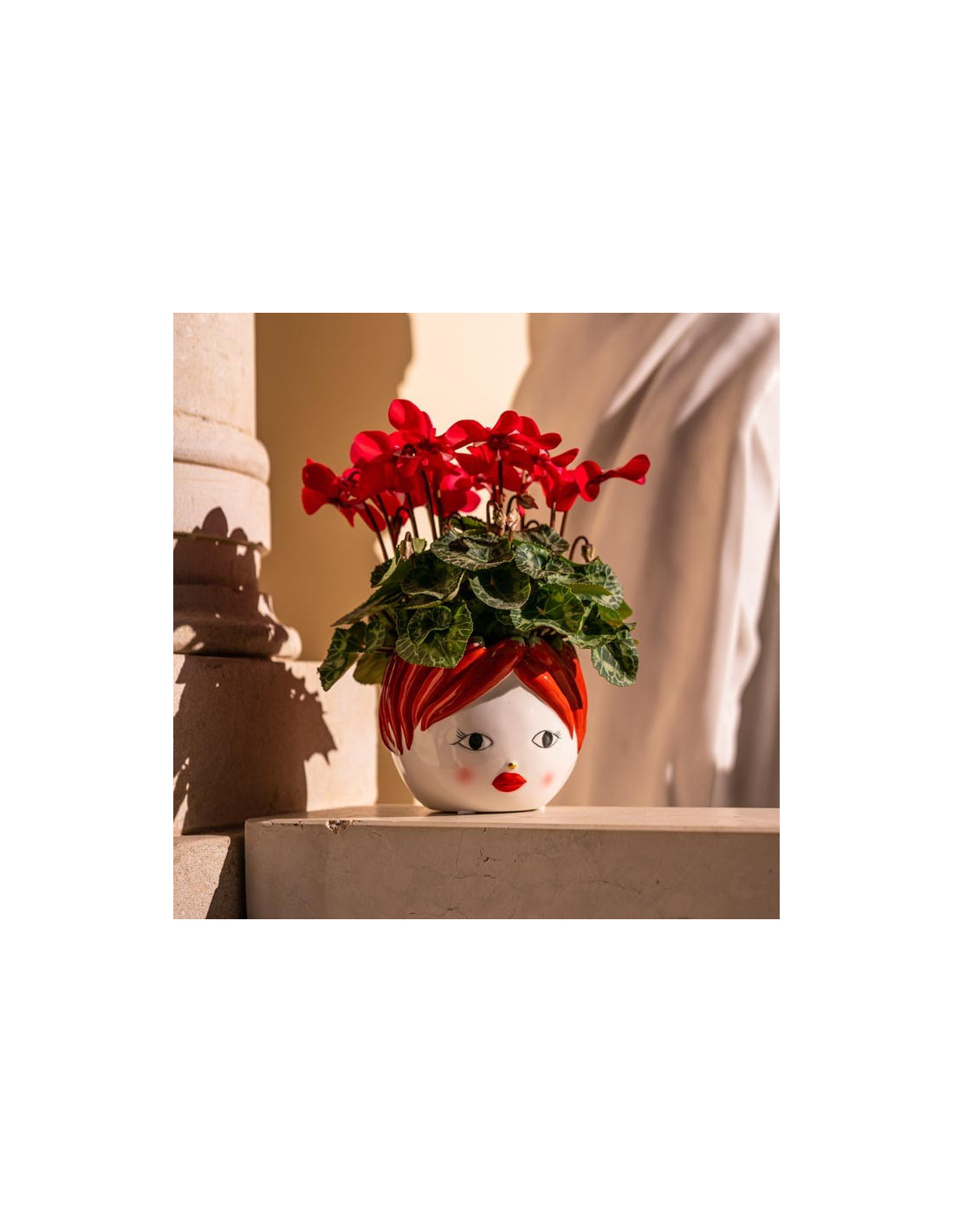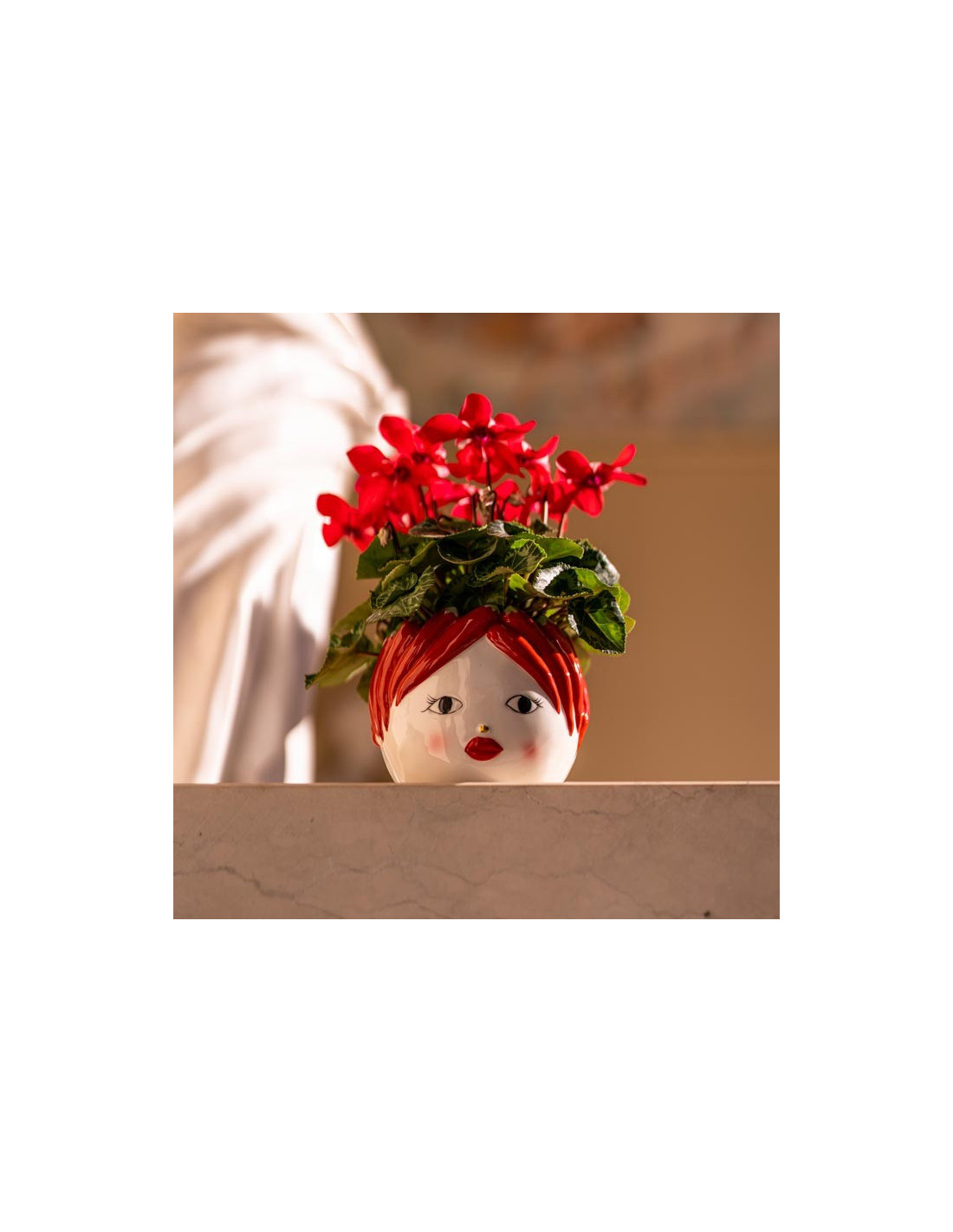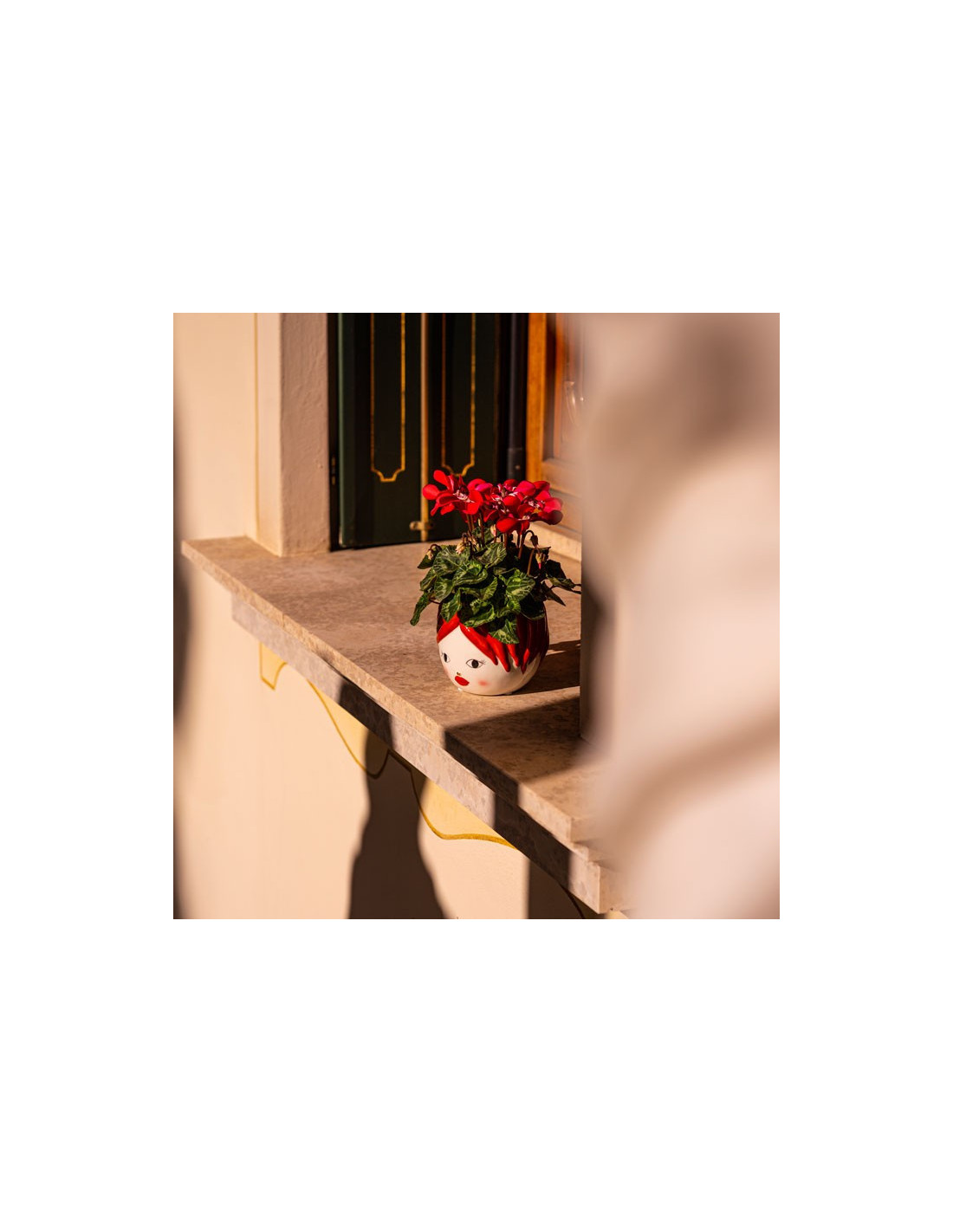 Originale e colorato vaso in ceramica con testa di donna e peperoncini rossi a rilievo; scenografico se utilizzato come vaso per piante e decorazioni ma bellissimo anche da solo.